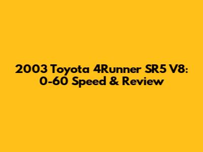 Let's dive into the specifics of the 2003 Toyota 4Runner SR5 V8, focusing on its 0-60 mph time and overall performance. This SUV has a reputation for reliability and capability, and understanding its acceleration is key to appreciating what it offers. For many potential buyers and enthusiasts, knowing how quickly a vehicle can go from 0 to 60 mph is an important factor in their decision-making process. So, let’s get started and explore the 2003 4Runner SR5 V8's performance capabilities.