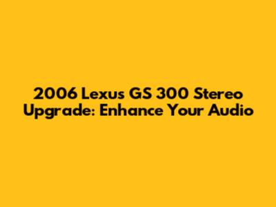 2006 Lexus GS 300 Stereo Upgrade: Enhance Your Audio