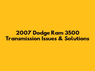 2007 Dodge Ram 3500 Transmission Issues & Solutions