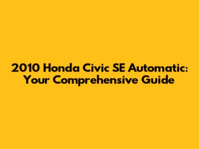 2010 Honda Civic SE Automatic: Your Comprehensive Guide
