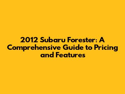 Hey car enthusiasts! Ever wondered about the 2012 Subaru Forester? It's a fantastic compact SUV known for its reliability, versatility, and Subaru's signature all-wheel-drive system. If you're considering buying one, or just curious about its value, you're in the right place! This guide dives deep into the 2012 Subaru Forester's pricing, features, and what you should consider before making a purchase. Let's get started, shall we?