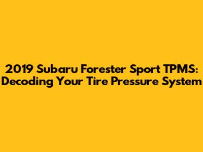 2019 Subaru Forester Sport TPMS: Everything You Need To Know