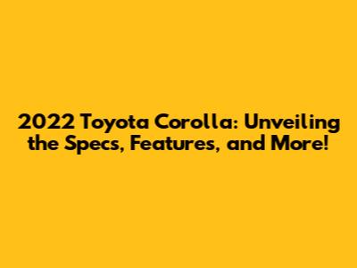 2022 Toyota Corolla: Specs, Features, And More!