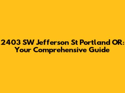 2403 SW Jefferson St, Portland, OR: Info & More