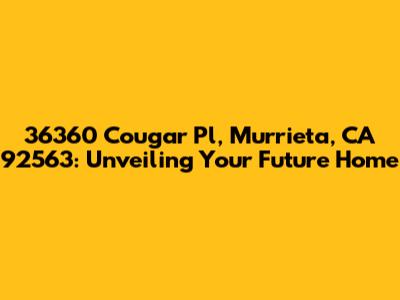 Hey there, future homeowner! Ever dreamt of a place where sunshine, serenity, and a vibrant community collide? Well, let me introduce you to 36360 Cougar Pl in Murrieta, CA 92563. This isn't just a house; it's a lifestyle, a sanctuary, and potentially your next chapter. This article will be your go-to guide for everything you need to know about this amazing property. We're going to dive deep, explore every nook and cranny, and paint a picture of what life could be like within those walls. Get ready to fall in love!