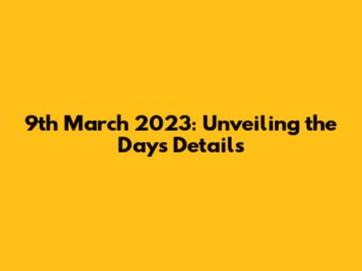 Alright, let's get to the main event: what day of the week was 9th March 2023? After consulting a calendar (or maybe a quick Google search!), the answer is: Thursday! Yes, guys, 9th March 2023 was a Thursday. Now that we know this information, we can start to learn about what happened on that date and the world events that happened. Now, you might be wondering, why is this information useful? Knowing the day of the week gives us a better context for understanding what happened. Did any important events occur on that day? Were there any significant news stories? Knowing it was a Thursday helps us understand what kind of activities people might have been engaged in, it helps us plan accordingly. Thursday is often a day for wrapping up the work week, and planning the weekend ahead. It might have been a busy day, filled with meetings, deadlines, and social gatherings. It's a day when many people are in a work mindset. If 9th March 2023 was a Thursday, maybe some big announcements were made. This is why knowing the day is so valuable. You can start creating connections and linking events to other events. Plus, it can be helpful for planning future events. For example, if you were considering hosting an event on this day, you'd know it was a Thursday, and you could plan accordingly. Maybe you would promote the event the week before to ensure everyone knows about it. So, remembering it was a Thursday gives us a clearer picture of how people might have been feeling and what they might have been doing. It also helps us consider the context of the day and how people might react to certain events. To summarize, 9th March 2023 was a Thursday, a day that allows us to find connections between our activities and other activities.