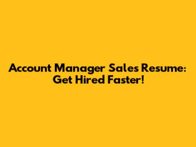 Account Manager Sales Resume: Get Hired Faster!
