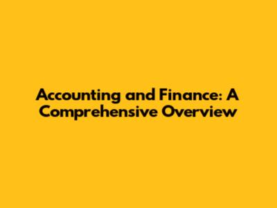 Accounting And Finance: A Comprehensive Overview