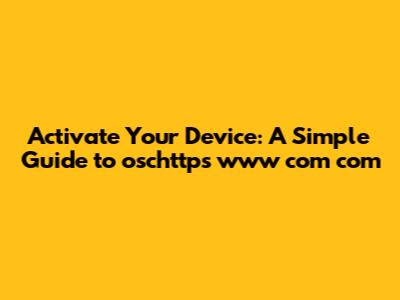 Activate Your Device: A Simple Guide To Oschttps Www Com Com