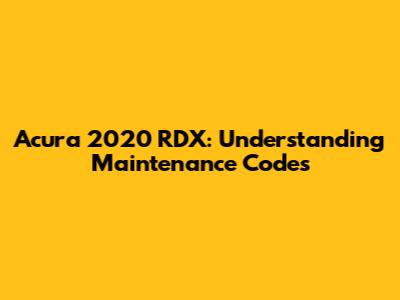 Acura 2020 RDX: Understanding Maintenance Codes