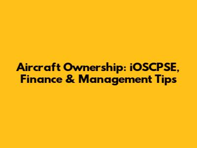 Aircraft Ownership: IOSCPSE, Finance & Management Tips