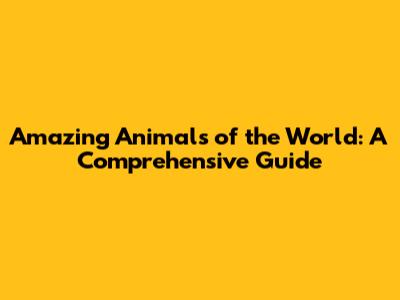 Amazing Animals Of The World: A Comprehensive Guide