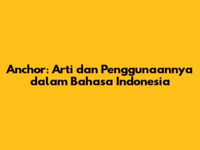 Anchor: Arti Dan Penggunaannya Dalam Bahasa Indonesia