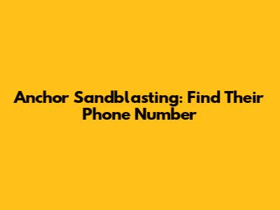 Anchor Sandblasting: Find Their Phone Number