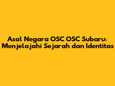 Asal Negara OSC OSC Subaru: Sejarah Dan Fakta Menarik