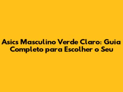 Asics Masculino Verde Claro: Guia Completo Para Escolher O Seu