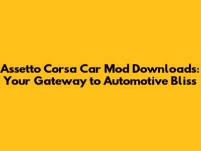 Assetto Corsa: Your Ultimate Car Mod Download Guide