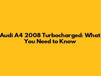 Audi A4 2008 Turbocharged: What You Need To Know