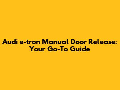 Audi E-tron Manual Door Release: A Comprehensive Guide