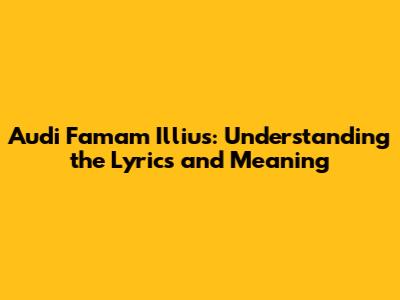Hey guys! Ever stumbled upon a piece of music so captivating that it just sticks with you? Well, Audi Famam Illius is one of those pieces. This timeless composition has resonated with listeners for centuries, and today, we're going to dive deep into what makes it so special. We'll explore the lyrics, uncover their meaning, and understand why this piece continues to be celebrated. So, buckle up and let's get started!