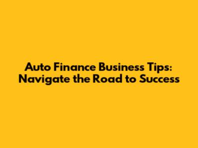 Auto Finance Business Tips: Navigate The Road To Success