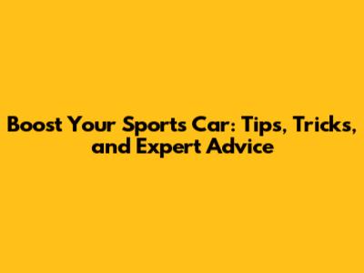 Boost Your Sports Car: Tips, Tricks, And Expert Advice