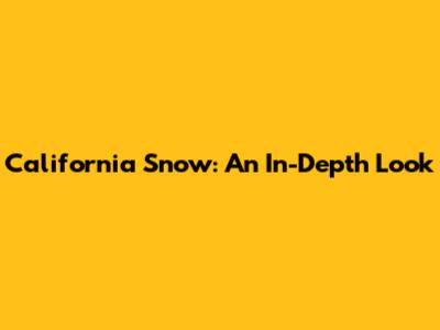 California Snow: An In-Depth Look