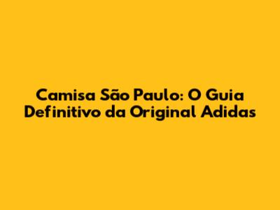 Camisa São Paulo: O Guia Definitivo Da Original Adidas