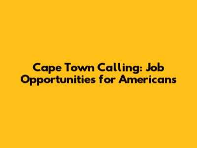 Cape Town Calling: Job Opportunities For Americans