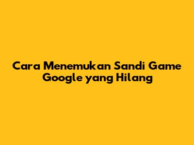 Cara Menemukan Sandi Game Google Yang Hilang