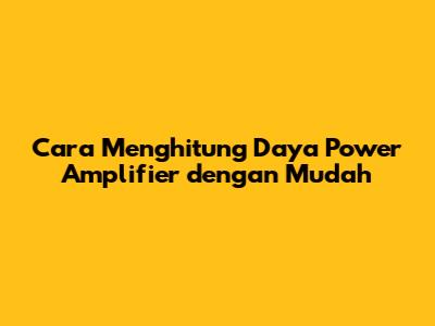 Cara Menghitung Daya Power Amplifier Dengan Mudah