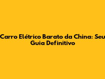 Carro Elétrico Barato Da China: Guia Completo E Preços