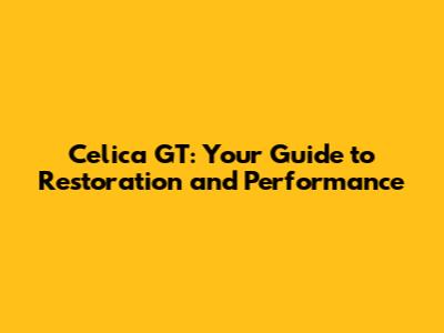 Celica GT: Your Guide To Restoration And Performance