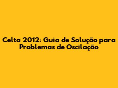 Celta 2012: Guia De Solução Para Problemas De Oscilação