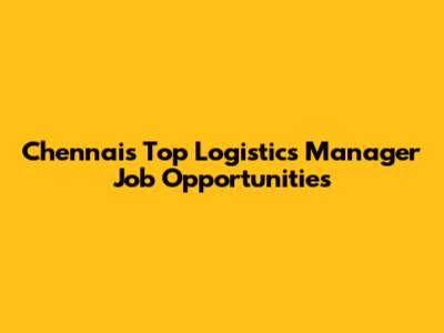 Chennai's Top Logistics Manager Job Opportunities