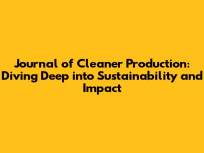 The Journal of Cleaner Production is a leading academic journal and a critical resource for anyone working in the field of sustainability. It provides a platform for disseminating cutting-edge research and best practices in various areas related to cleaner production. Here's why it's so significant: