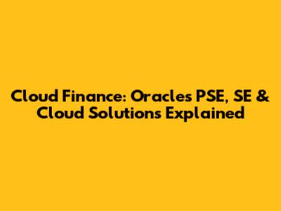 Cloud Finance: Oracle's PSE, SE & Cloud Solutions Explained
