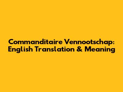 Commanditaire Vennootschap: English Translation & Meaning