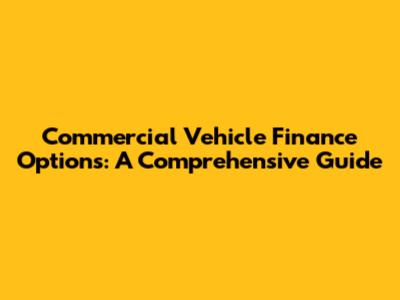Commercial Vehicle Finance Options: A Comprehensive Guide
