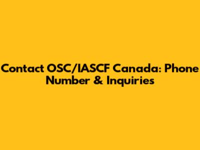 Contact OSC/IASCF Canada: Phone Number & Inquiries
