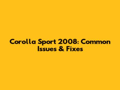 Corolla Sport 2008: Common Issues & Fixes