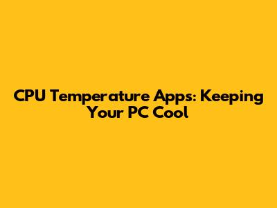 CPU Temperature Apps: Keeping Your PC Cool