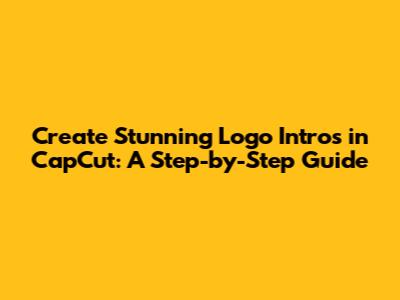 Create Stunning Logo Intros In CapCut: A Step-by-Step Guide