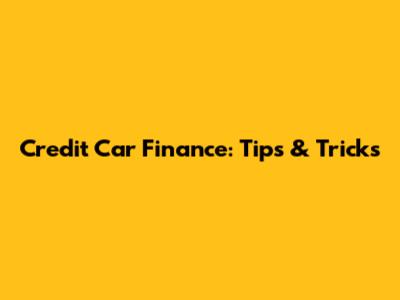 Credit Car Finance: Tips & Tricks