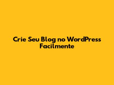 Crie Seu Blog No WordPress Facilmente