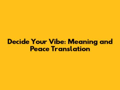 Decide Your Vibe: Meaning And Peace Translation