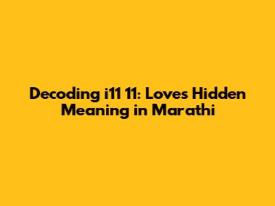 Decoding I11 11: Love's Hidden Meaning In Marathi