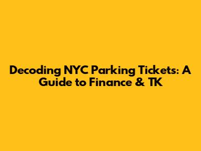 Decoding NYC Parking Tickets: A Guide To Finance & TK