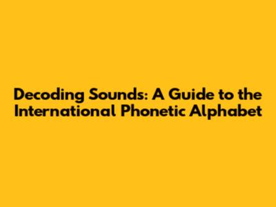 Decoding Sounds: A Guide To The International Phonetic Alphabet