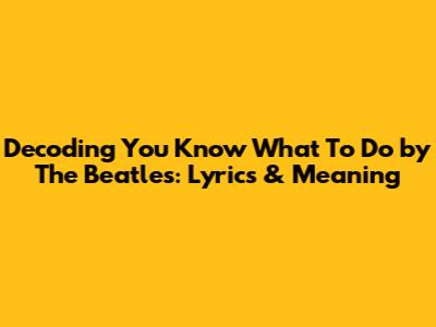 Decoding 'You Know What To Do' By The Beatles: Lyrics & Meaning